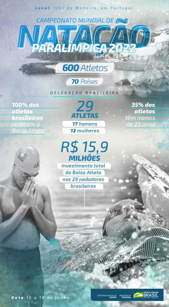 Os melhores nadadores paralímpicos do planeta mudaram o CEP temporariamente. Estão todos na Ilha da Madeira, em Portugal, para a principal competição do esporte paralímpico internacional em 2022. O Mundial de natação será de 12 a 18 de junho e reúne mais de 600 atletas, de 70 países. É o primeiro evento de grande porte da modalidade no ciclo para os Jogos Paralímpicos de Paris, na França, em 2024.