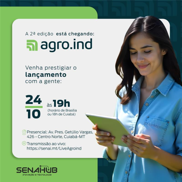 O Instituto Senai de Tecnologia (IST MT), por meio do Senai Hub, lança nesta quinta-feira (24.10) a segunda edição do Agro.ind, o maior programa de inovação aberta de Mato Grosso. O evento de lançamento acontece às 18h, no IST e também será transmitido ao vivo.