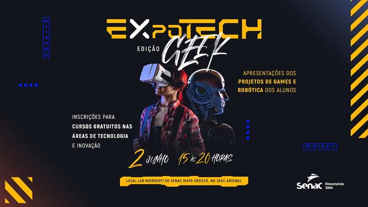 O Sistema Fecomércio-MT realizará, nesta sexta-feira (2/6), das 15 às 20h, a 1ª ‘Expotech’ de 2023 do Serviço Nacional de Aprendizagem Comercial em Mato Grosso, no Lab Microsoft do Senac-MT, instalado no Sesc Arsenal, em Cuiabá.