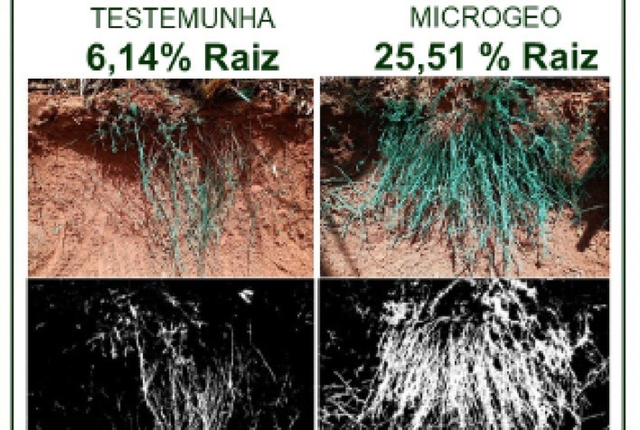 Um exemplo dos resultados obtidos com o uso do manejo biológico é da região de Araçatuba/SP. Numa área de 2º corte com ambiente E, o 1º ano de aplicação do Adubo Biológico produzido com Microgeo® resultou em 25,51% de raiz, enquanto a área testemunha entregou 6,14%.