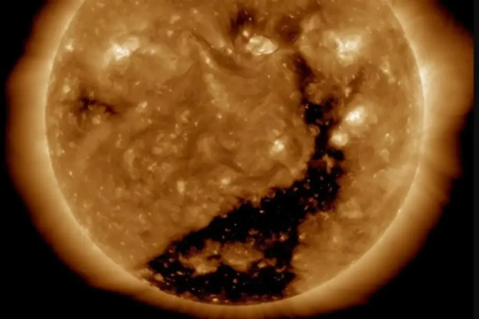Segundo a Nasa, esse buraco coronal está transmitindo vento solar em direção à Terra há cerca de um mês. Esses ventos são áreas de campo magnético aberto a partir das quais as partículas solares fluem para o espaço.