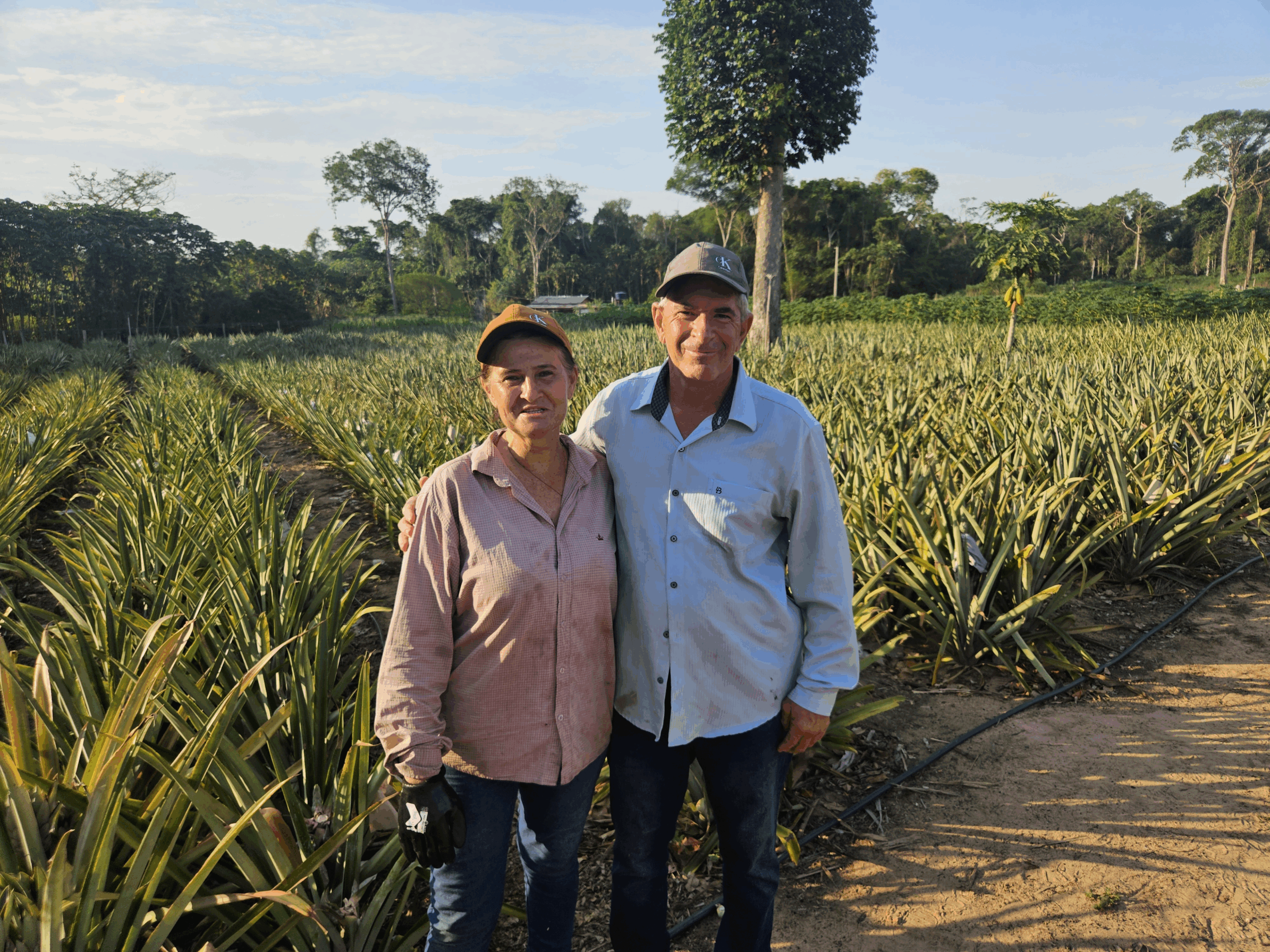 O casal Gebrair Pinheiro e Márcia Krindgies deixou a vida de servidores públicos em Lucas do Rio Verde para investir no sonho de viver da terra. Há três anos, eles adquiriram o Sítio Nossa Senhora das Graças, em Tapurah, e transformaram a antiga área de vegetação nativa em um modelo de produção agroecológica, com destaque para o cultivo de abacaxi. A propriedade é uma das 28 beneficiadas com kits de irrigação entregues pela Secretaria de Estado de Agricultura Familiar (Seaf) e conta com assistência técnica da Empresa Mato-grossense de Pesquisa, Assistência e Extensão Rural (Empaer).
