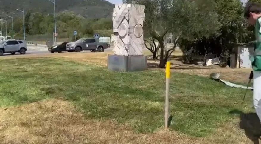 “Apresento a vocês uma inovação bastante incomum e virtuosa que somos a primeira cidade a implantar no Mediterrâneo graças a uma startup. ‘Pintamos’ a grama seca usando tecnologia 100% orgânica à base de algas”, explicou o prefeito.