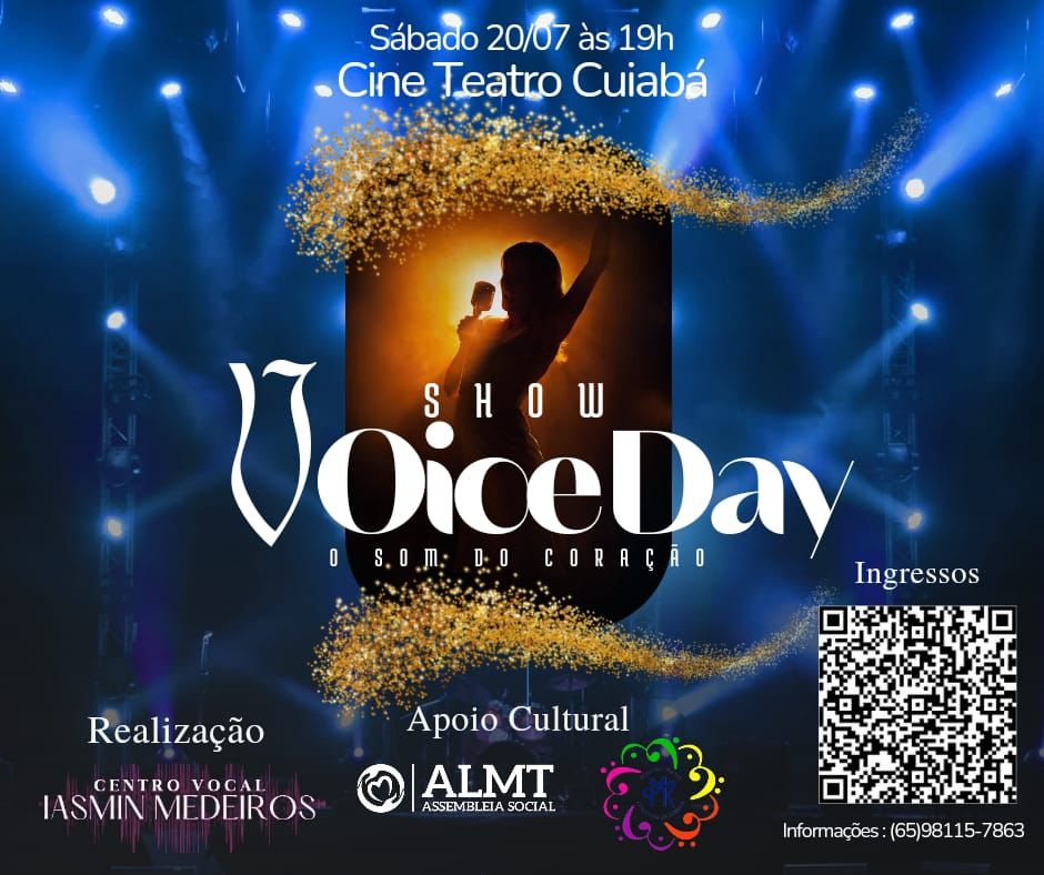 Um recital que dá destaque ao instrumento mais completo: a voz humana. Esse é o convite para a noite deste sábado (20), às 19h, no Cine Teatro Cuiabá. Os ingressos do “Show Voice Day – O som do coração” custam a partir de R$ 12,50 e podem ser adquiridos pela plataforma Sympla (https://www.sympla.com.br/evento/show-voice-day-o-som-do-coracao/2483331).