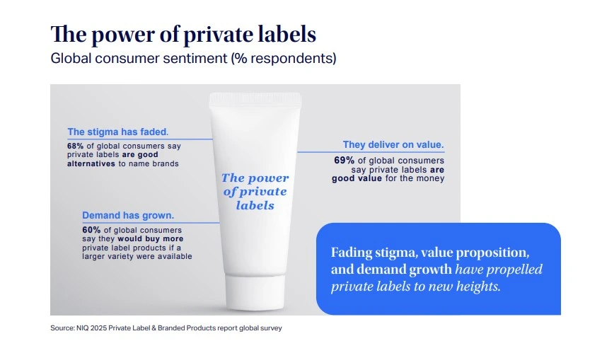 Um estudo recente da NielsenIQ (NIQ), intitulado Encontrando Harmonia na Prateleira: Perspectivas Globais para Produtos de Marca Própria e de Marca para 2025, revelou que no cenário global, 53% dos participantes indicaram que estão aumentando suas compras de produtos de marcas próprias. O relatório confirma que as vendas de marcas próprias cresceram 4,3% anualmente em comparação ao ano anterior.
