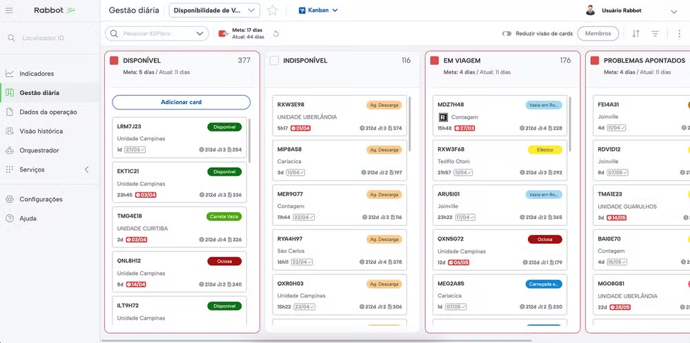 Plataforma da Rabbot mostra etapas de disponibilidade de uma frota — Foto: Divulgação
