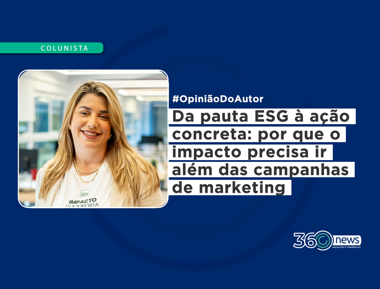 O primeiro passo é reconhecer que ESG não é um departamento isolado ou uma agenda paralela, mas parte da estratégia central de negócios. Impacto não pode ser apenas marketing. Precisa estar atrelado ao core business, a indicadores claros e a metas que orientem o dia a dia da organização.