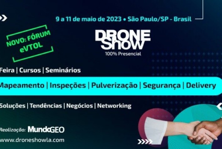 A DroneShow 2023, principal evento da comunidade de drones profissionais da América Latina, chega à sua 9ª edição ainda maior, com mais de 120 expositores, 150 palestrantes e instrutores e expectativa de superar os 5 mil visitantes. O evento organizado pela MundoGEO será 100% presencial no Centro de Convenções Frei Caneca, em São Paulo, entre os dias 9 e 11 de maio.