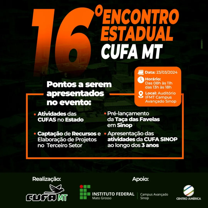 É com grande entusiasmo que estendemos nosso convite para o Encontro Estadual da CUFA MT, um evento que promete ser um momento único de inspiração, aprendizado e fortalecimento mútuo.