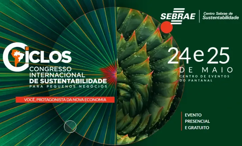 O protagonismo dos pequenos empreendedores na nova economia é o principal debate que norteará a 5ª edição do Congresso Internacional de Sustentabilidade para Pequenos Negócios (Ciclos). O evento será realizado nos dias 24 e 25 de maio, no Centro de Eventos do Pantanal (CEP), em Cuiabá (MT), e contará com discussões sobre as práticas de ESG (Ambiental, Social e Governança, traduzido para o português) em negócios de impacto, emergências climáticas, financiamento verde entre diversos outros temas ligados ao futuro do empreendedorismo sustentável.
