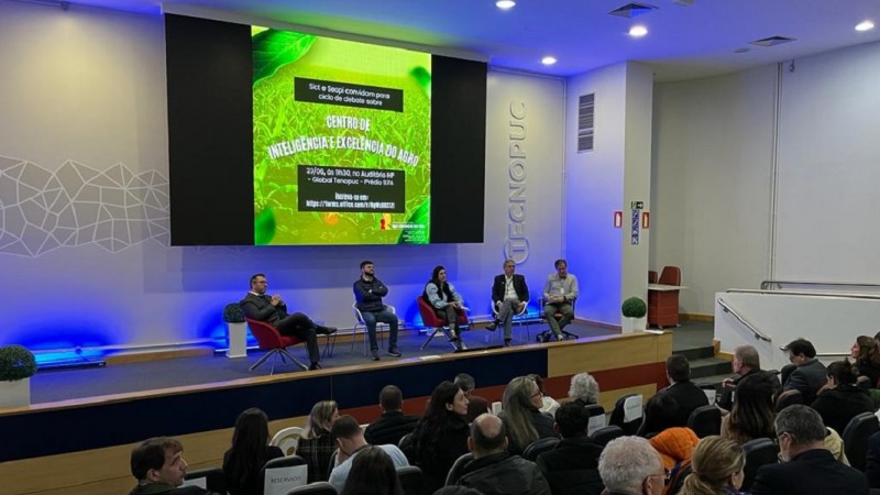 O primeiro ciclo de debate sobre o Centro de Inteligência do Agro, projeto inédito liderado pela Secretaria de Inovação, Ciência e Tecnologia (Sict) em parceria com a Secretaria da Agricultura, Pecuária, Produção Sustentável e Irrigação (Seapi), ocorreu nesta sexta-feira (23/6). Atores da quádrupla hélice (governo, iniciativa privada, academia e sociedade civil organizada) se reuniram no Tecnopuc, em Porto Alegre, para criar em conjunto a proposta do novo hub de inovação do agronegócio, cuja sede deverá ser o Parque de Exposições Assis Brasil, em Esteio. O lançamento oficial está previsto para a Expointer, em agosto.