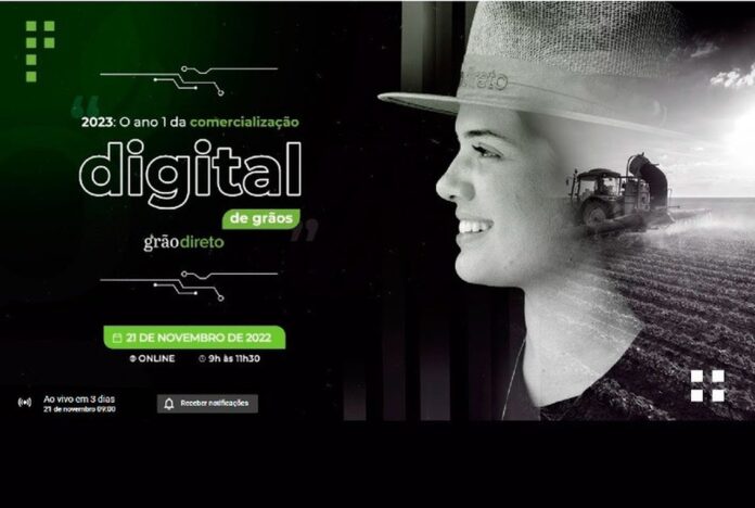 A Grão Direto — plataforma digital referência na comercialização de grãos na América Latina — promove em São Paulo, no dia 21 de novembro, às 9 horas, o evento institucional “2023: O ano 1 da Comercialização Digital de Grãos”, caracterizando o ano como um marco para história do segmento. Com transmissão aberta ao público, de forma online, o objetivo central da ação é falar sobre as transações digitais no agro e como a tecnologia tem impulsionado a adesão de cada vez mais colaboradores e clientes, além da eficiência na hora de negociar.