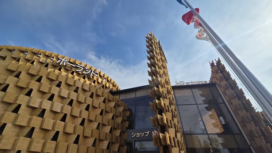 Se o Brasil apostou na luz e a China na simplicidade humana, a Polônia encantou pelo conjunto dos sentidos. Logo na fila, a recepção já anunciava o tom: guarda-chuvas distribuídos, bancos com carregadores por indução e fones que antecipavam a história. Lá dentro, cada sala ativava um sentido, como cheiro de floresta, sons da natureza e texturas da madeira.