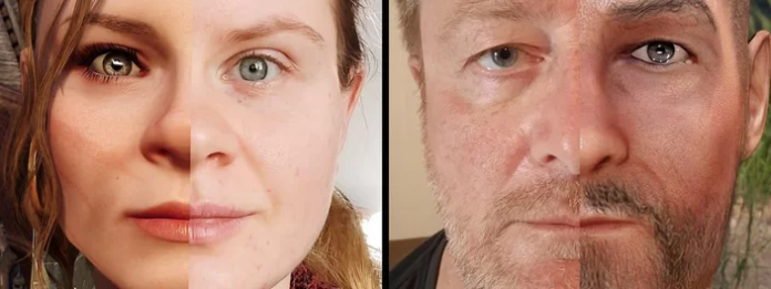 Clique aqui para conferir a imagem em tamanho completo.Como é possível suspeitar, o criador de personagens padrão do jogo não é capaz de resultados assim. Para conseguir recriar pessoas do mundo real com um bom nível de realismo, é preciso usar mods. Alguns mods adicionam mais opções no criador de personagens, outros melhoram a renderização de certos elementos, como a pele e os olhos.