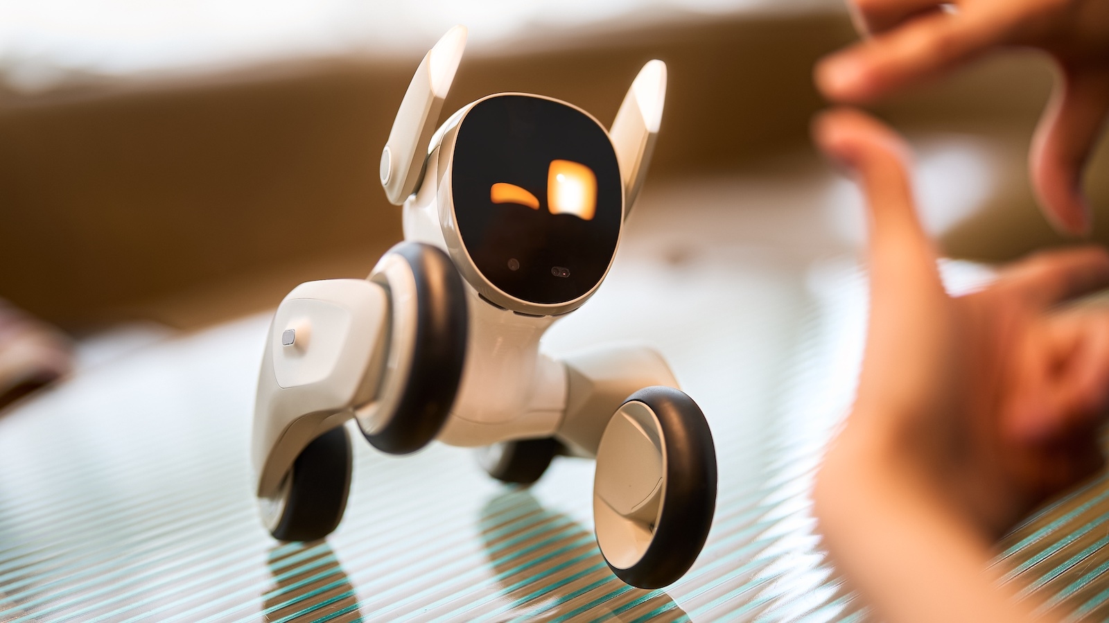 Outra câmera é capaz de reconhecer rostos e reagir de acordo, como um cachorrinho correndo de felicidade quando o tutor chega em casa. Quatro microfones estão espalhados pelo corpo de Loona para que ele consiga saber de onde vem o som do dono chamando, seguindo a voz como um pet faria – gatos não, eles ignoram o tutor quase sempre.