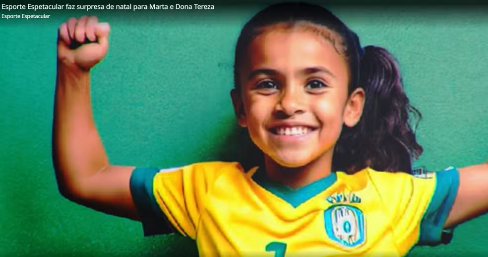 Marta ganha álbum de infância feito por inteligência artificial — Foto: Reprodução Esporte Espetacular