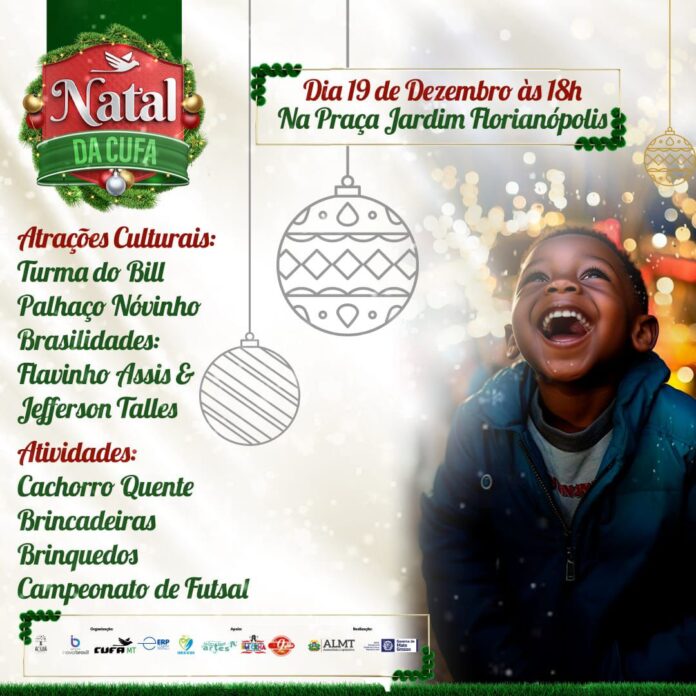 As famílias cuiabanas têm data e horário certo para viver a magia do Natal. O Natal da Cufa será realizado na quinta-feira (19.12), a partir das 18 horas, na Praça do bairro Jardim Florianópolis. A programação inclui música ao vivo, apresentações culturais, brincadeiras e atividades interativas para pais e filhos.