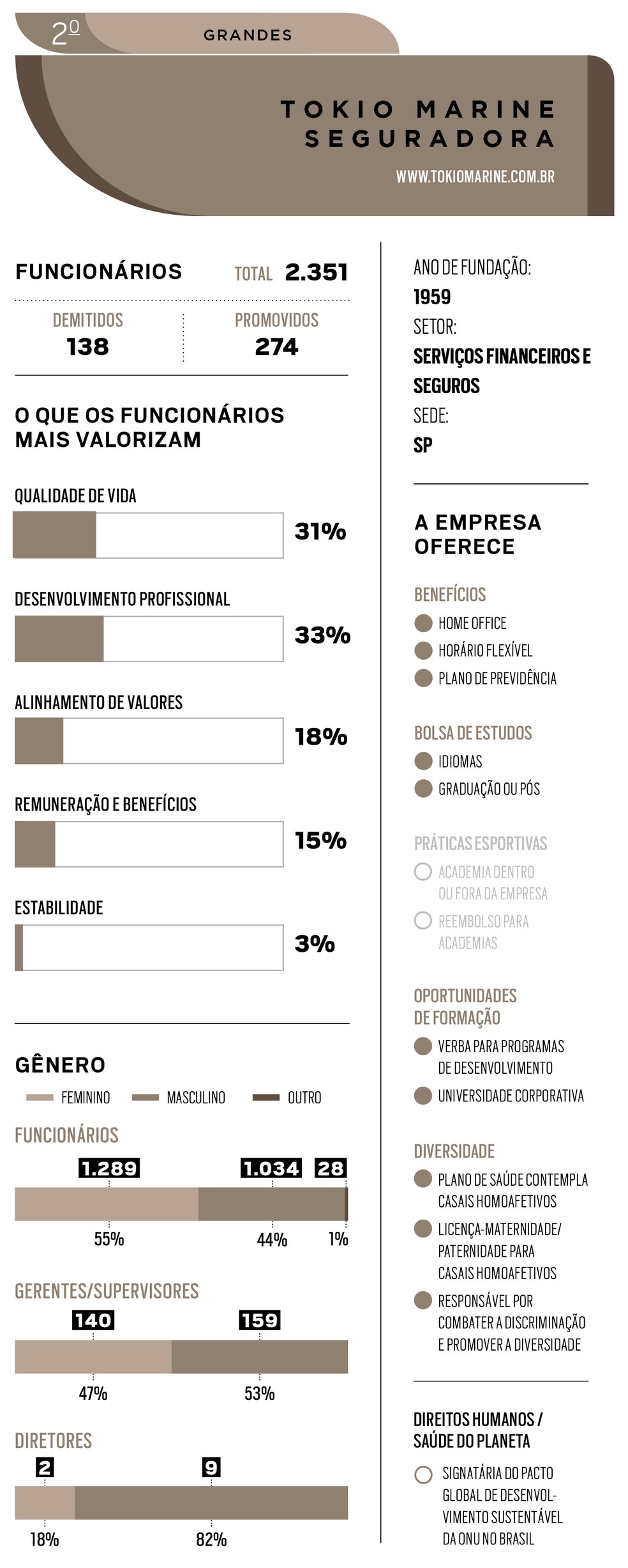 José Adalberto Ferrara, presidente da Tokio Marine Seguradora, costuma dizer que a empresa está sempre preocupada em contribuir para o desenvolvimento pessoal e profissional dos “resolvedores”, como denominam os funcionários. “Isso é importante não somente para a realização deles como pessoas, mas também para que a companhia possa usar essa capacidade diversa, criativa e comprometida para atingir seus objetivos”, diz. Aparentemente, a estratégia está funcionando: em 2023, a empresa bateu a marca de R$ 1,4 bilhão de lucro líquido, o melhor resultado da história da Tokio Marine, que está no país há 65 anos. Com o “Tokio com Todos”, programa que engloba iniciativas voltadas à promoção da igualdade e da diversidade, a companhia vem obtendo resultados importantes, como a valorização das mulheres no trabalho: hoje, 55,9% do quadro da seguradora é feminino. Um dos pontos altos do desenvolvimento de carreira é o acesso à educação: a Universidade Corporativa Tokio Saber conta com mais de 150 cursos online, com diferentes focos. Há ainda um subsídio de até 80% do valor do curso escolhido pelo colaborador, que pode ser de idiomas, graduação, pós-graduação ou MBA.