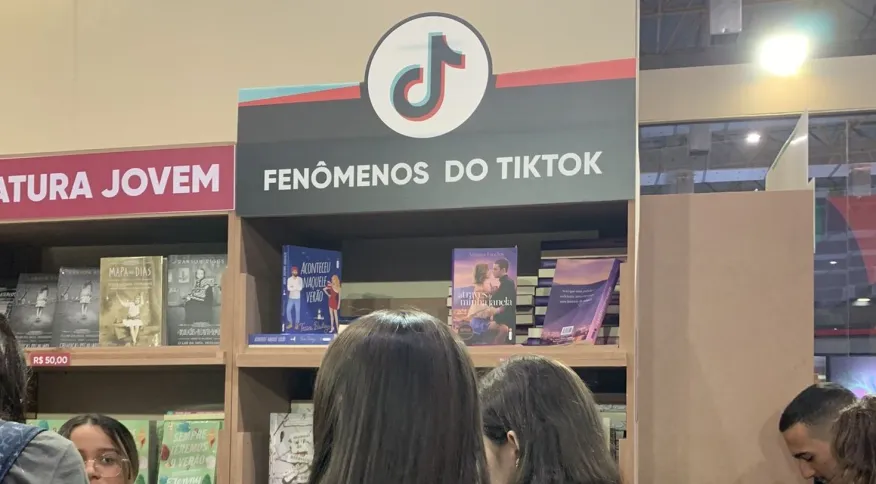 Uma estande chamava a atenção com um espaço dedicado aos “Sucessos do TikTok”. Ali, livros amplamente divulgados na mídia social conhecida pelas “dancinhas” estavam expostos e causavam aglomeração para escolher as obras.
