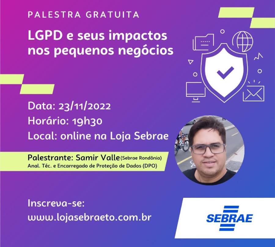 O seminário será ministrado pelo analista e encarregado do sistema de dados do Sebrae Rondônia, Samir Valle. A palestra esclarecerá o que é LGPD, sua aplicabilidade, efeitos, objetivos, complicações legais, direitos e categorias no que se refere a dados, princípios, impactos e afins.