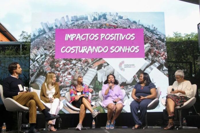 O Costurando Sonhos Brasil, projeto em conjunto com o G10 Favelas, busca soluções socioambientais e acessíveis no meio da moda ao desenvolver coleções com o conceito upcycling. Uma das criações, que são desenhadas e confeccionadas por mulheres da iniciativa, foi uma coleção feita a partir do reaproveitamento de uniformes que seriam descartados. “O negócio tem como foco o empreendedorismo feminino, empoderando mulheres para que elas tenham independência financeira, prosperem e se tornem o que quiserem”, diz Suéli Feio, co-fundadora doCosturando Sonhos, que faz parte do G10 Favelas.