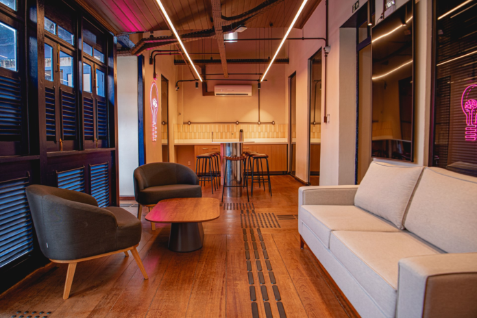 A reforma contemplou o casarão que possui aproximadamente 667 metros quadrados distribuídos em dois andares do prédio que estava bastante deteriorado. O ambiente agora conta com um espaço moderno e inovador, sem comprometer a sua arquitetura original, onde suas fachadas, pisos de cantaria e telhados foram preservados e restaurados para criar um ambiente único e inspirador. Coworking, salas de reunião e de aula, sala design thinking, laboratório maker, zona de descompressão e diversas outras áreas de trabalho e convivência compõem a arquitetura do EQT Lab.
