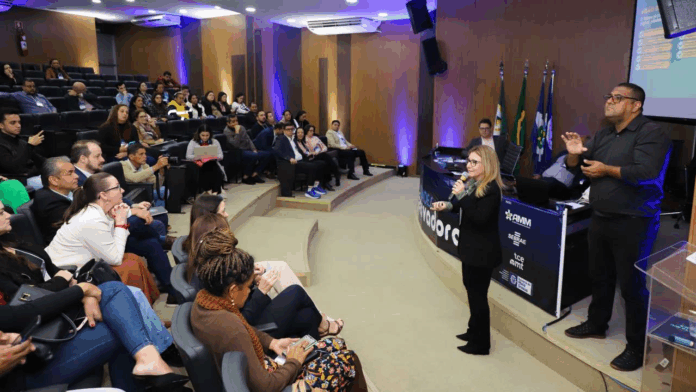 A prefeita de Várzea Grande, Flávia Moretti (PL), mostrou os avanços tecnológicos de Várzea Grande, durante o evento Cidades Inovadoras, no auditório da Associação Mato-grossense dos Municípios (AMM).