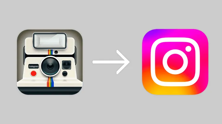 A evolução do logo da rede social segue as transformações do Instagram ao longo dos anos, de um espaço voltado apenas para publicação de fotos a uma plataforma multimídia versátil e dinâmica. Em mais de uma década de existência, a empresa teve cinco ícones diferentes, com direito a uma grande reconstrução em 2016.