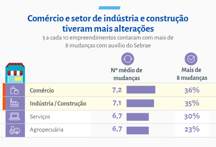Mais de 40% dos entrevistados pelo Sebrae realizaram entre seis e oito mudanças na empresa após passarem pelo atendimento da instituição – e um terço dos empresários realizou mais de oito mudanças. A pesquisa também apontou que os Microempreendedores Individuais (MEI) colocaram em curso o maior número médio de inovações em seus empreendimentos.
