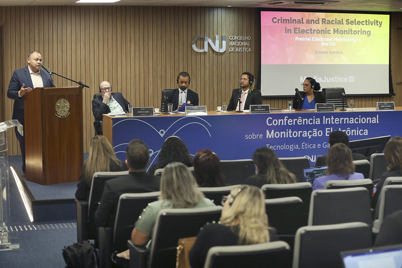 Fabio Esteves, juiz do Tribunal de Justiça do Distrito Federal e Territórios, também destacou o racismo estrutural na sociedade brasileira e suas especificidades com relação ao contexto estadunidense. Esteves, assim como Kilgore, questiona a ideia de que o monitoramento eletrônico seja uma solução adequada para o problema do encarceramento em massa. Embora possa parecer uma alternativa, é necessário considerar seus efeitos desproporcionais na população negra. “Devemos refletir sobre a ressignificação de tecnologias que supostamente visam combater o racismo, mas acabam fortalecendo o controle racial”.