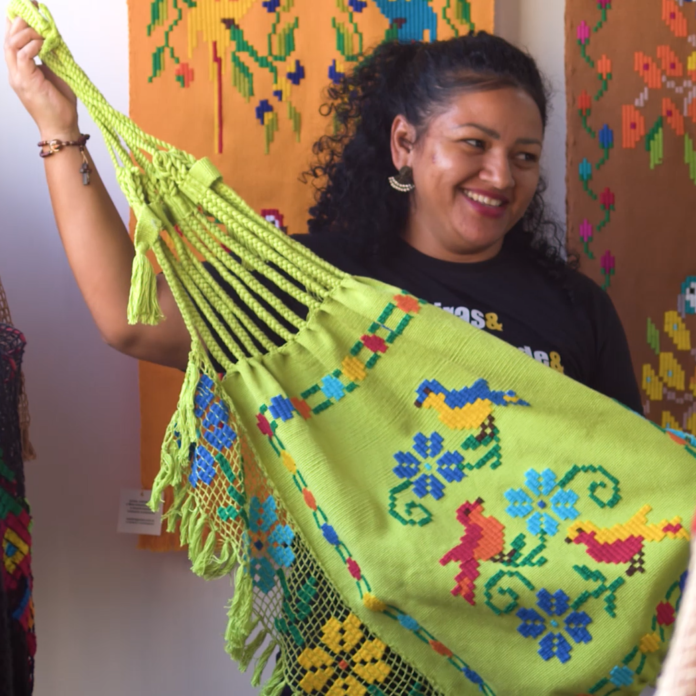 A presidente da Tece Arte – Associação das Redeiras de Limpo Grande, Jilaine Maria da Silva Brito, de 38 anos, contou que vem de uma comunidade de mulheres que tradicionalmente tecem redes. Com seu tecer vertical, a Rede Cuiabana é feita com fios de algodão e tem cores vibrantes e desenhos inspirados na flora e fauna local. Essa técnica é passada de mãe para filha, cultura que é herança dos povos originários mato-grossenses.