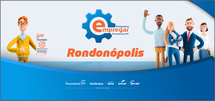 Após realizar a qualificação de dezenas de jovens em Cuiabá e Várzea Grande para o mercado de trabalho, o ‘Programa Empregar’, do Sistema Fecomércio/Sesc/Senac/IPF-MT, chega a Rondonópolis nos próximos dias 21 e 22 de julho. A inscrição para os jovens, de 16 a 20 anos de idade, é gratuita e pode ser feita pelo link na bio do Instagram da Fecomércio-MT.