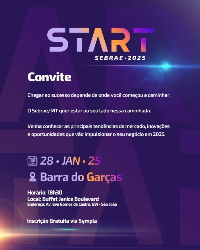 O Sebrae dá início ao ano com o Start Sebrae 2025, um evento que promete conectar empreendedores, líderes e inovadores em um espaço de aprendizado e troca de experiências. Com uma programação dinâmica e uma presença de destaque, o evento ocorrerá no próximo dia 28 de janeiro, às 18h30, no Janice Boulevard, em Barra do Garças, Mato Grosso.