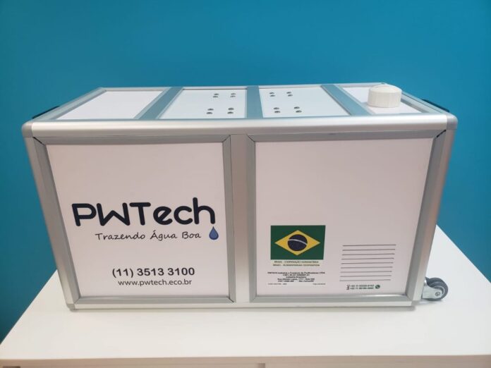 Assim surgiu a PWTech, startup voltada para a purificação de água contaminada. O equipamento portátil é capaz de transformar, diariamente, 5 mil litros de água suja da chuva, de rios, poços, represas, açudes e lagos em água potável.