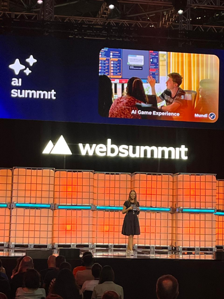 A cofundadora da Mundi Game Experiences, Fabiele Nunes, abriu o palco do AI Summit, no Web Summit Rio, em abril, e falou sobre a apreensão das pessoas em relação à integração de ferramentas de produtividade baseadas em IA