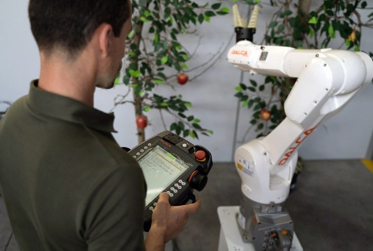 Vermelhinha, doce e suculenta, a maçã que chega para matar a fome na hora do lanche é resultado de um complexo processo que começa com o cultivo no campo e tem, na colheita, uma de suas etapas mais delicadas. Sensível, a fruta requer uma série de cuidados no momento de ser retirada da árvore e transportada para o acondicionamento. Até hoje, esse é um trabalho feito manualmente pelos pomares ao redor do mundo todo — tarefa sazonal, que precisa ser cumprida em um curto intervalo de tempo, exigindo grandes movimentos de contratação de mão de obra temporária — cada vez mais escassa e difícil de recrutar.