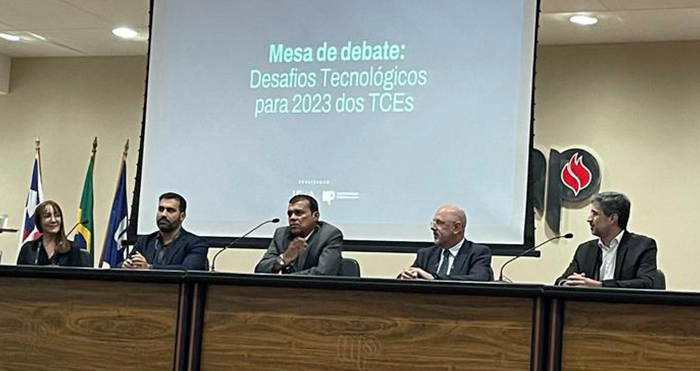 A mesa de debates foi composta por Aloísio Dourado, auditor-chefe adjunto do TCU, Lúcio Camilo Oliva Pereira, subsecretário de TI do TCE-RJ, Jairo Wensing, coordenador da Assessoria de Governança de TI do TCE-SC, Pedro Vieira, assessor especial da presidência do TCM-BA, mediada por Edmilson Santos Galiza, diretor-geral do Centro de Estudos e Desenvolvimento de Tecnologias para Auditoria (Cedasc) do TCE-BA.