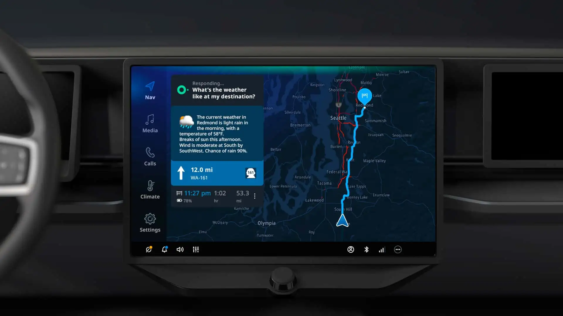 Os motoristas poderão “conversar naturalmente com seu veículo”, diz a TomTom. Eles também poderão “pedir ao assistente com tecnologia de IA para navegar até um determinado local, encontrar paradas específicas ao longo da rota e controlar vocalmente os sistemas de bordo para, por exemplo, aumentar a temperatura, abrir as janelas ou mudar as estações de rádio”.