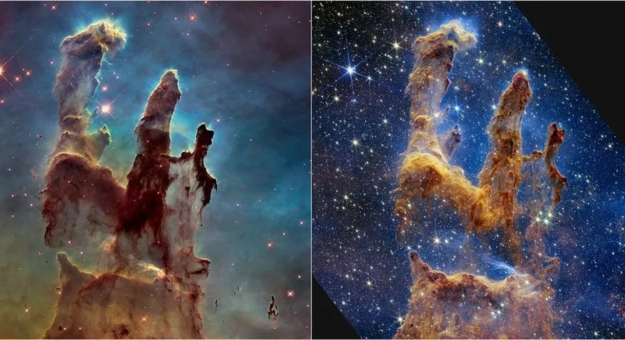 Os Pilares da Criação ficaram famosos em 1995, quando foram registrados pelo telescópico espacial Hubble pela primeira vez. Em 2014, a paisagem foi revisitada e estudada por diversos observatórios.