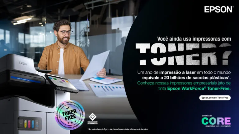 A Epson anunciou a campanha “Toner Free” com o objetivo de incentivar empresas a abandonar a impressão a laser no ambiente corporativo. Como alternativa, a japonesa, parceira oficial da COP 30, apresenta sua tecnologia de impressão a frio, mais moderna, sustentável e, principalmente, eficiente.