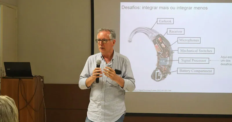 “Hoje somos dependentes de tecnologia importada para reabilitar pessoas com deficiência auditiva. Os Aparelhos de Amplificação Sonora Individual (AASIs) e os implantes cocleares têm valores altíssimos. Uma tecnologia predominantemente nacional, portanto mais barata, permitiria aumentar o número de pacientes atendidos com os mesmos recursos financeiros atuais, além de diminuir as filas gigantescas. Seria um avanço sem precedentes para as políticas públicas em nosso país”, avalia Carlos Ferreira dos Santos, vice-diretor da FOB e superintendente do HRAC/Centrinho.