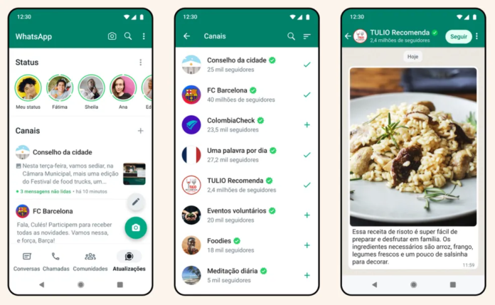 - Status: os usuários podem compartilhar atualizações de um canal no seu status. Basta manter a atualização que achar interessante pressionada, selecionar “encaminhar” e depois, “meu status”.